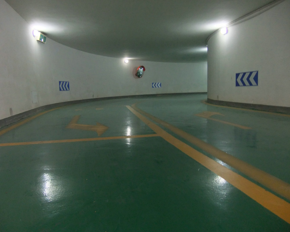 因為地下車庫普遍存再濕度較大,灰塵顆粒較多,地表油污不易清洗等缺陷。對停車場內的構件、車輛都會有一定的侵蝕,同時油跡斑駁的地面也會極大的影響停車場的美觀和維護,而采用地下車庫地坪漆處理地面已是國內外高檔地下車庫地坪的首選材料!而地下車庫的施工一般都少不了坡道的施工,坡道的地坪施工必須要具備防滑性能。地下車庫防滑坡道是采用具有特殊功效聚合物、改性樹脂、多角性硬度礦物骨料、其他摻和物和外加劑組成的,并采用特殊工藝施工而成。