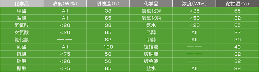 3.在100℃以下,能抵抗大部分酸,堿,鹽等化學(xué)試劑的腐蝕;
