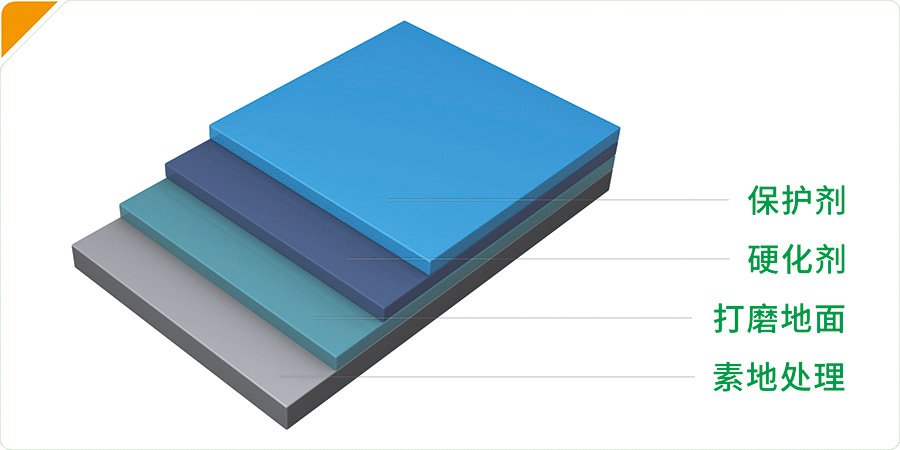 5.保 護 劑: 硬化劑施工完 24 小時后,進行保護劑的施工。在把地面塵土清理干凈后,用噴霧器將保護劑均勻噴灑于地面上,在噴灑同時用 100% 滌綸拖把緊跟著拖均勻,并以高速拋光機拋光至表面光滑,發(fā)亮。